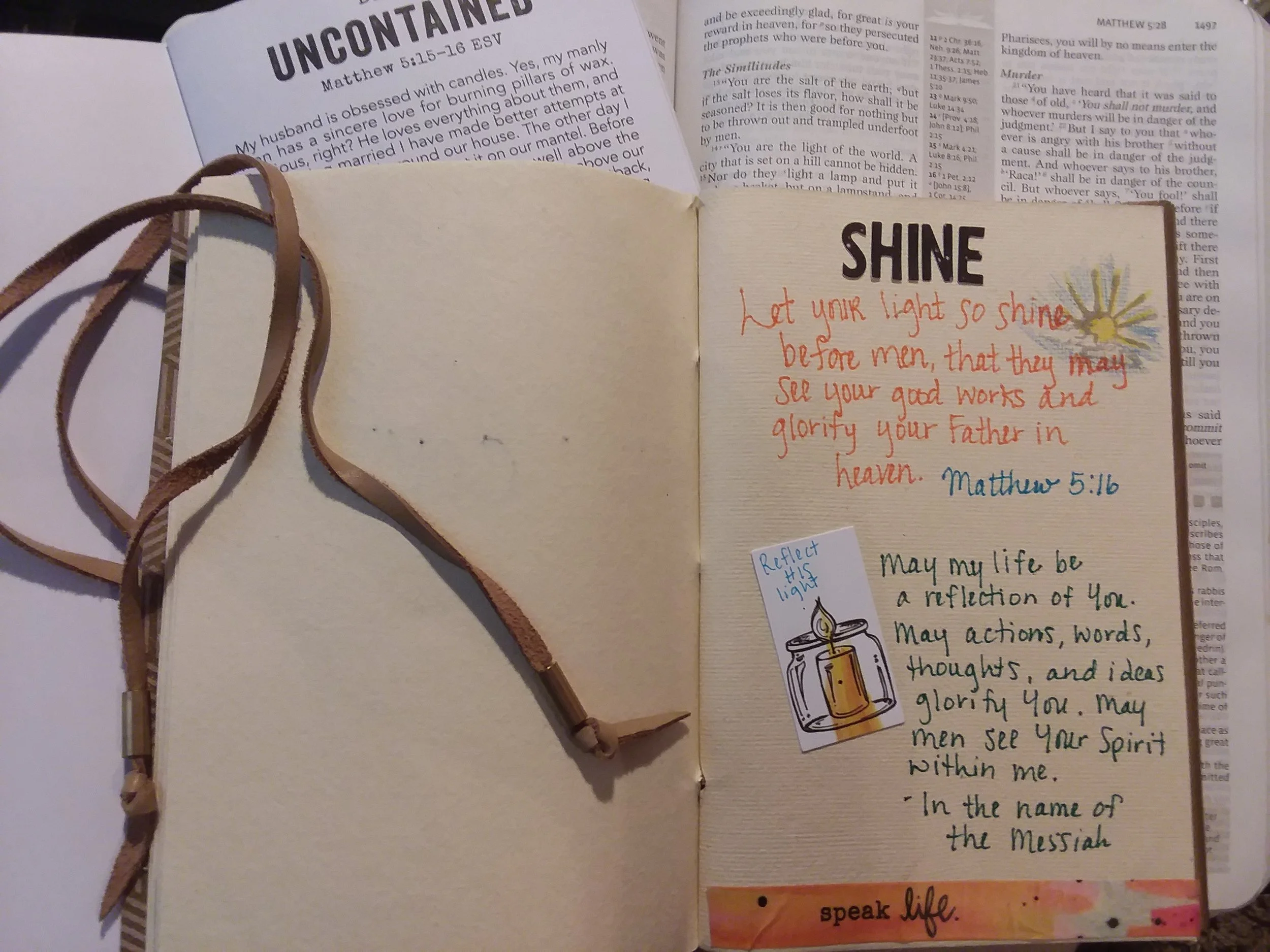 Day 1 Scripture passage was Matthew 5:15-16. Since it was just the reminder that I needed especially after a conversation that I had with a friend yesterday, I decided that I wanted to write out verse 16. It is the passage that I am intentionally focusing on as I walk through this day ... to let my light shine in order to bring glory to the Father. Although I think I do okay with this, I really want the words to become cemented into my heart.
